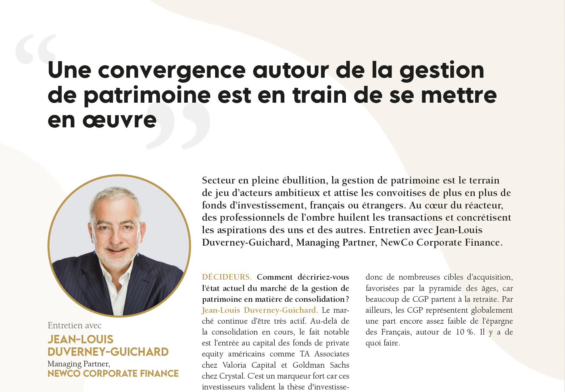 Interview de Jean-Louis Duverney par Leaders League sur la consolidation du secteur des CGP.